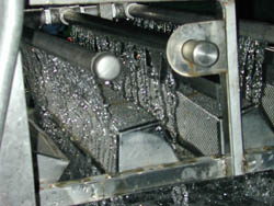 左のしゃしんのドロのように見えるのは水の中から分離されたよごれの成分です。
